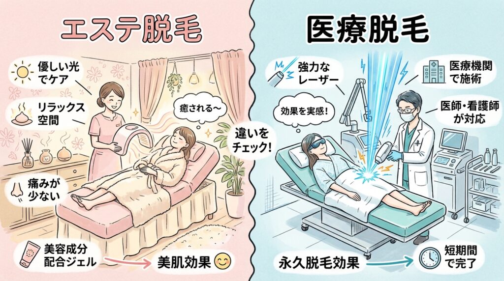参考:エステ脱毛と医療脱毛の違い