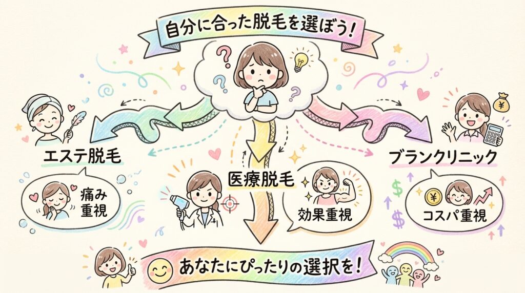 【徹底比較】エステ脱毛vs医療脱毛、結局どっちがいいの?ブランクリニックがコスパ最強な理由も教えます♪
